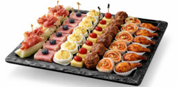 Opgemaakte schaal met ambachtelijke hapjes ( circa 50 stuks)